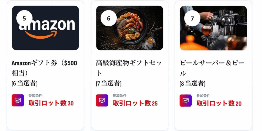 いずれかの賞品の条件を満たすと、その賞品の抽選に参加できます!