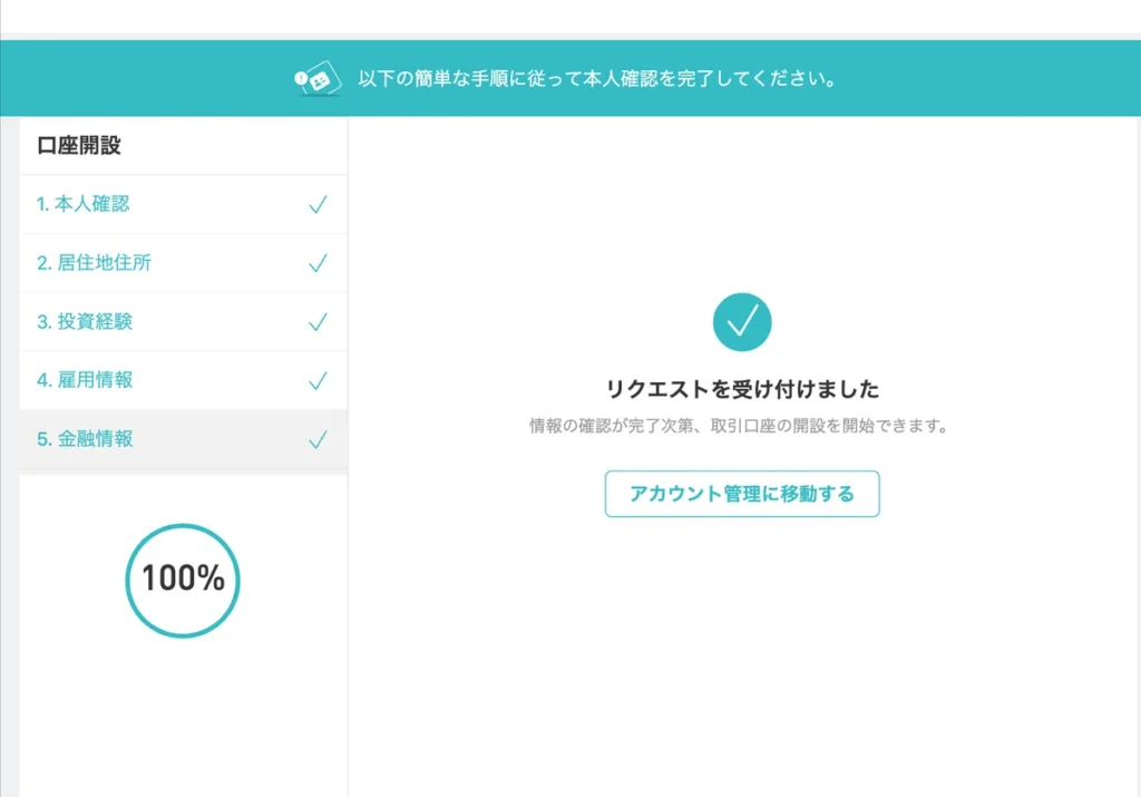 口座開設はオンラインで完結し、必要な手続きもシンプルです。