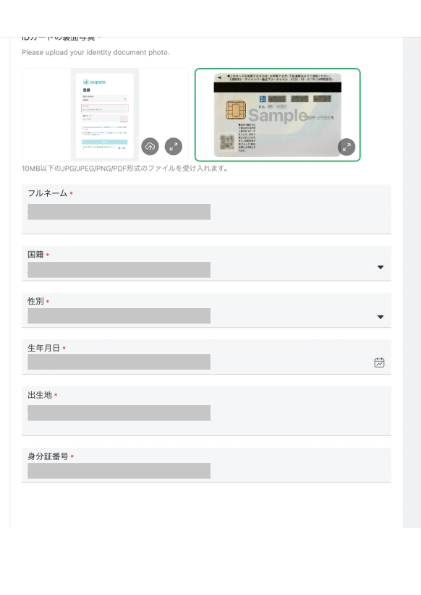 身分証に記載されている情報を入力していきます。