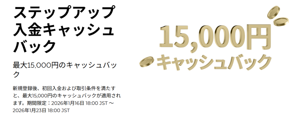 FXGT(エフエックスジーティー)「ステップアップ入金キャッシュバック」最大15,000円|期間限定キャンペーン