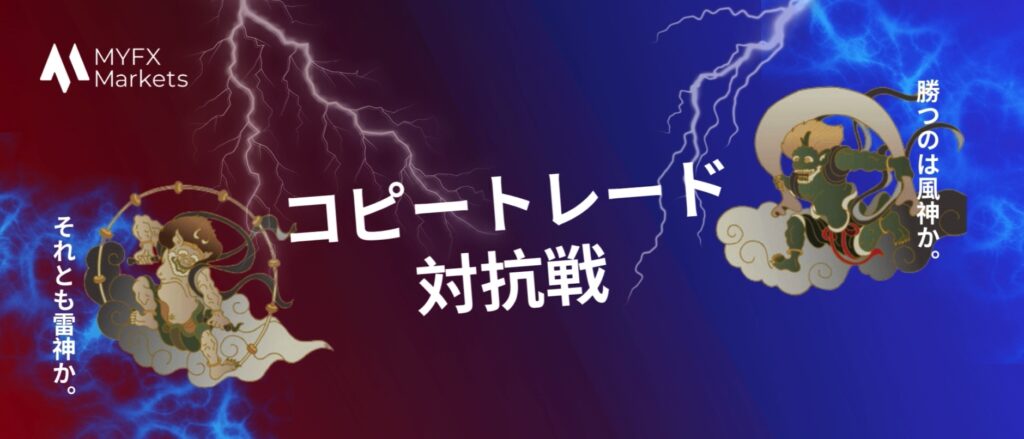 選ばれしトレーダーたちが「MYFX風神チーム」と「MYFX雷神チーム」に分かれ、リアルタイムでスコアを競い合います。